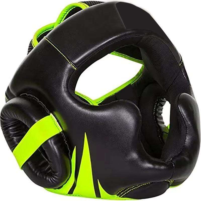 หมวกป้องกันศีรษะสำหรับฝึกซ้อมและแข่งขันคิกบ็อกซิ่ง หนังแท้ คุณภาพสูง สกรีนโลโก้ได้ตามต้องการ สีดำ ขายดี