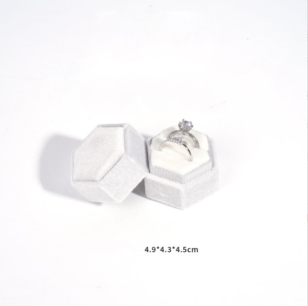 กล่องใส่แหวนกำมะหยี่ขายดี กล่องเครื่องประดับทรงหกเหลี่ยมสองชั้น กล่องบรรจุภัณฑ์เครื่องประดับ ขายส่งระดับไฮเอนด์