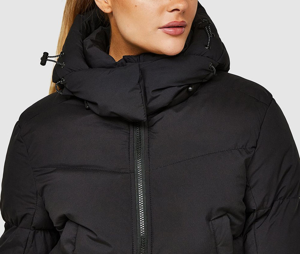 แจ็กเก็ตบุขนปลาปักเป้าสำหรับฤดูหนาวสีดำความยาวสั้นกลางแจ้งมีซิปขนาดใหญ่พิเศษพิมพ์โลโก้ได้ตามต้องการ