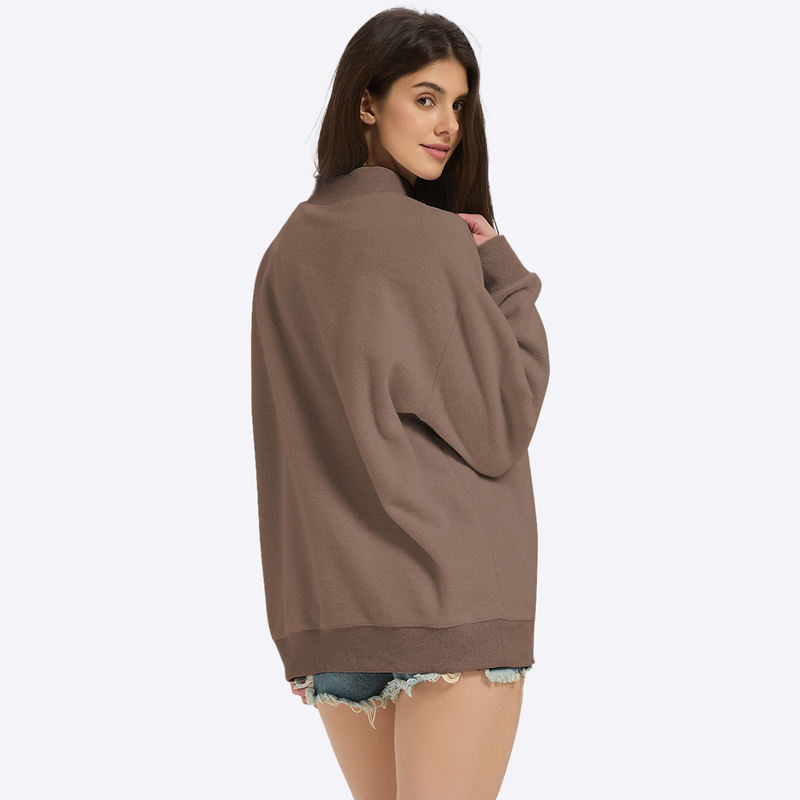 เสื้อสเวตเชิ้ตคอเต่าแบบกลับด้านได้ ผ้าฝ้ายสำหรับผู้หญิง พิมพ์โลโก้ได้ตามต้องการ ขายดี ทรงโอเวอร์ไซส์
