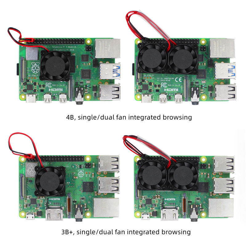 พัดลมคู่ขายดี พร้อมฮีทซิงค์ พัดลมระบายความร้อนคู่แบบอัลติเมท รุ่นเสริมสำหรับ Raspberry Pi 4B/3B+