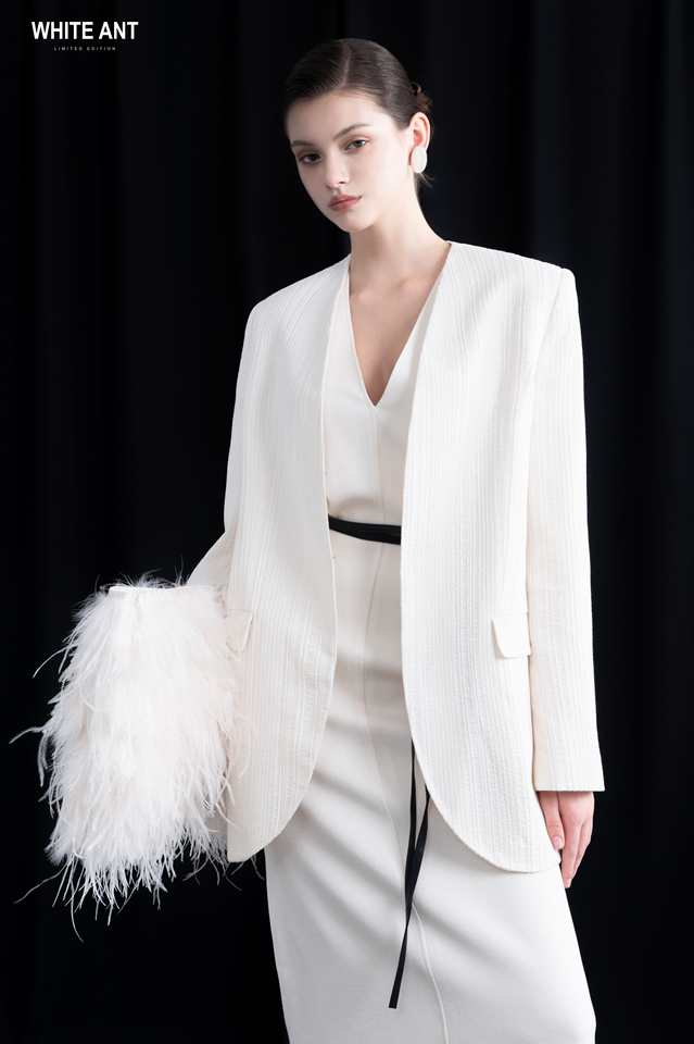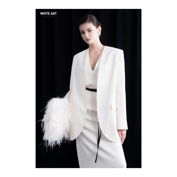 ขายร้อนElegantผู้หญิงแจ็คเก็ตสองกระเป๋าด้านหน้าผ้าฝ้ายย่นอินทรีย์PERA SINGLE-Breasted COLLARLESS BLAZER