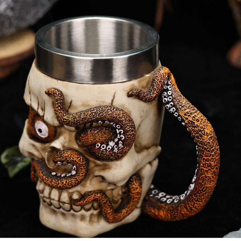แก้วเบียร์สแตนเลสลายหัวผีสยองขวัญพร้อมอาวุธเดียว