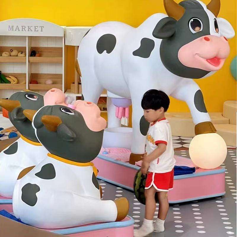สนามเด็กเล่นในร่มขายดีสวนสนุกสวนสนุกแฮปปี้แรนช์อุปกรณ์รีดนมวัวจำลองสำหรับเด็ก