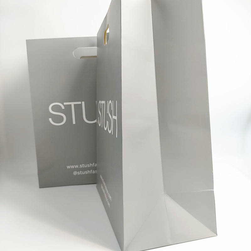 ถุงกระดาษช้อปปิ้งแฟชั่นสุดหรูพร้อมหูหิ้วแบบไดคัท สกรีนโลโก้ตามสั่ง ขายดี