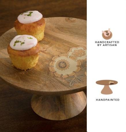 ขาตั้งเค้กไม้มะม่วงลายดอกไม้ใหม่ ขายดี ขาตั้งเค้กไม้หรูหรา