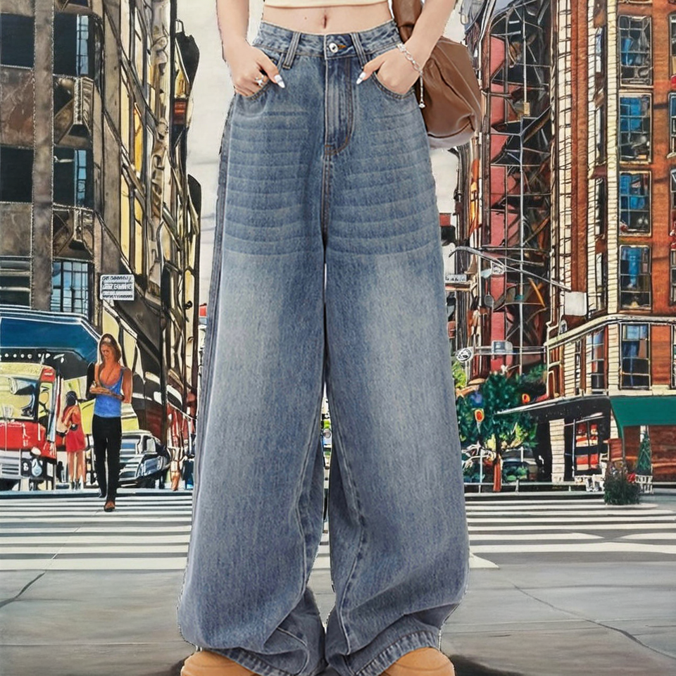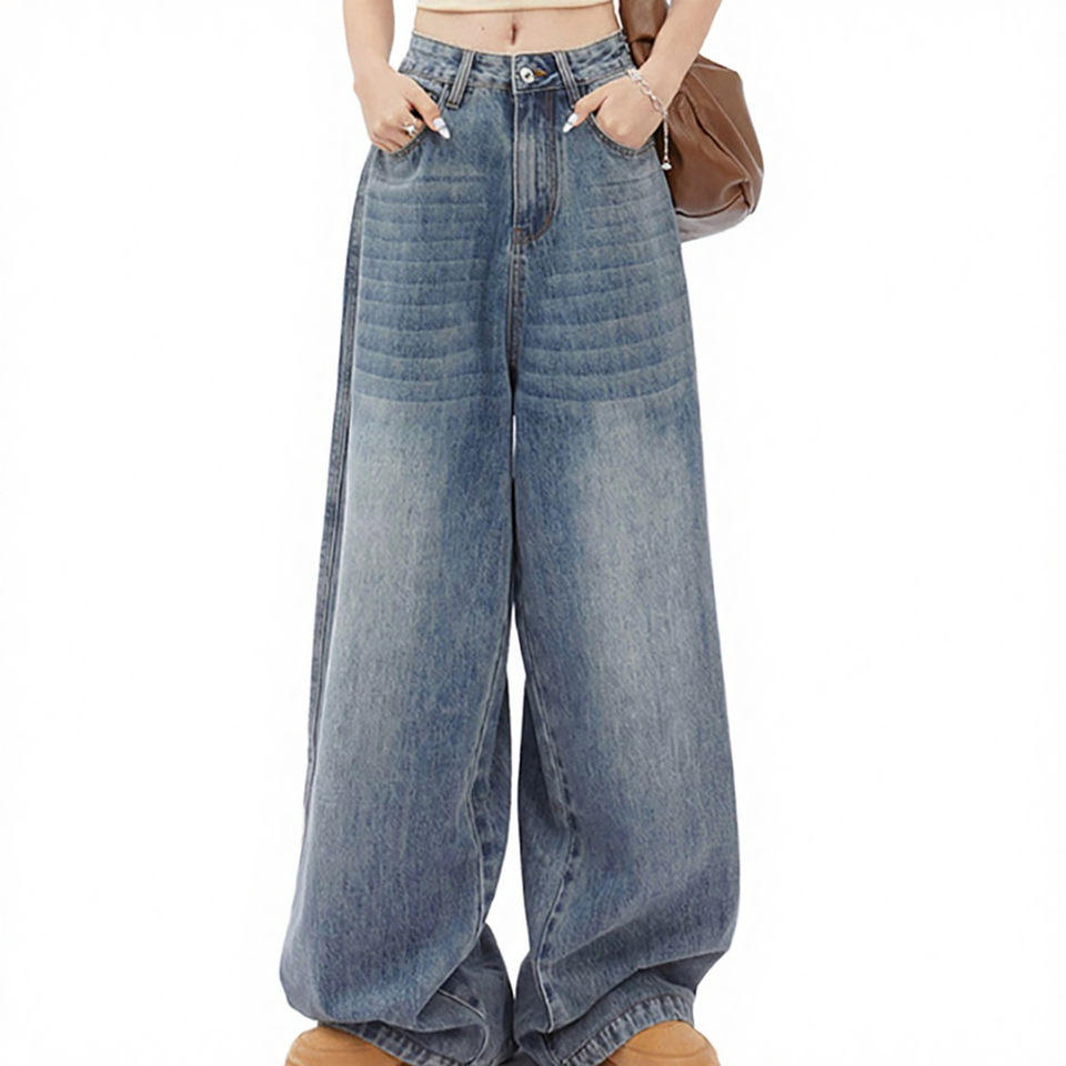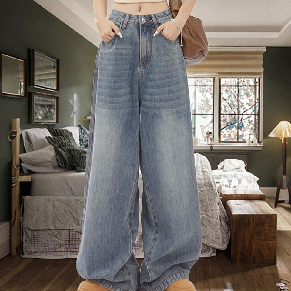 กางเกงยีนส์ทรงตรงเอวสูงสไตล์ลำลองสำหรับผู้หญิงรุ่นใหม่ขายดี กางเกงยีนส์สไตล์อเมริกันแบบเรโทร ผ้าเดนิมเนื้อแน่น ระบายอากาศได้ดี เหมาะสำหรับฤดูหนาว