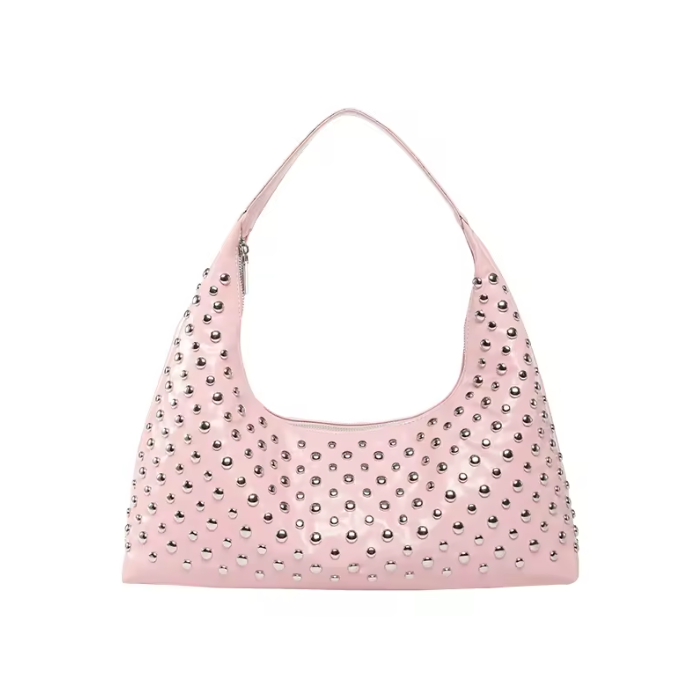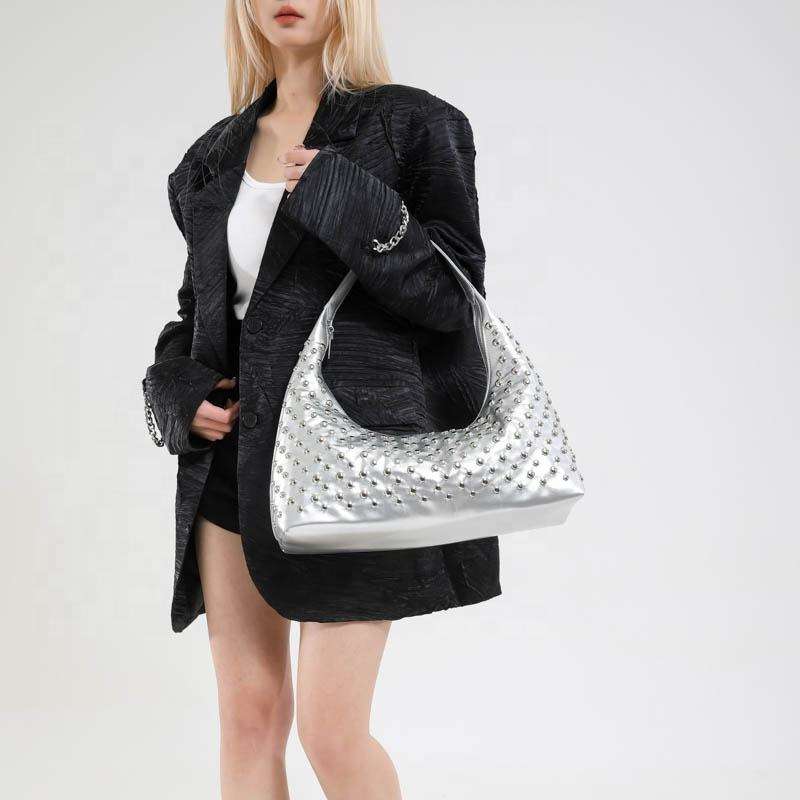 กระเป๋าสะพายไหล่ผู้หญิงหนัง PU แฟชั่นลำลอง สไตล์ฮอบโบ้ ประดับหมุด สำหรับสาวๆ วัยรุ่น ขายดี