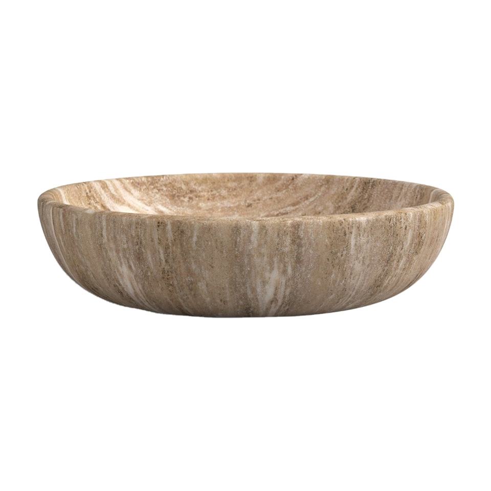 Hot selling Round Beige Marble Decorative Bowl Handmade Natural Stone Shallow Tray for Home Decor and Centerpiece latest bowls
