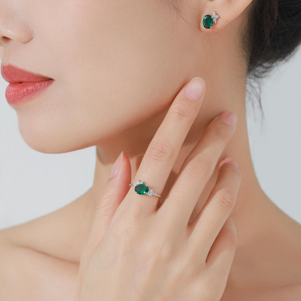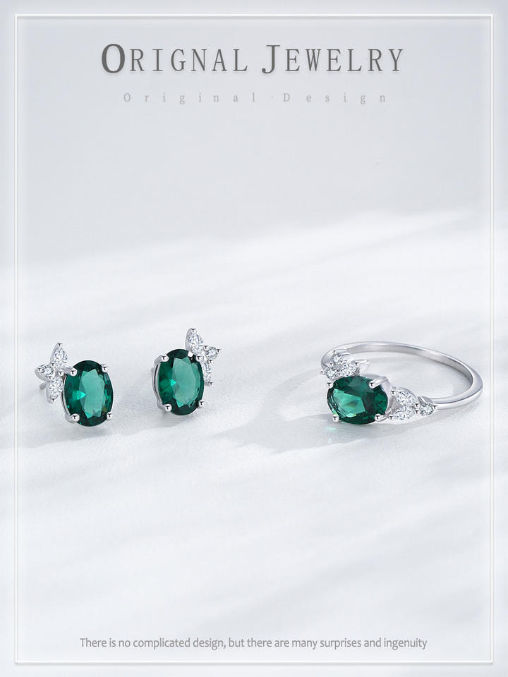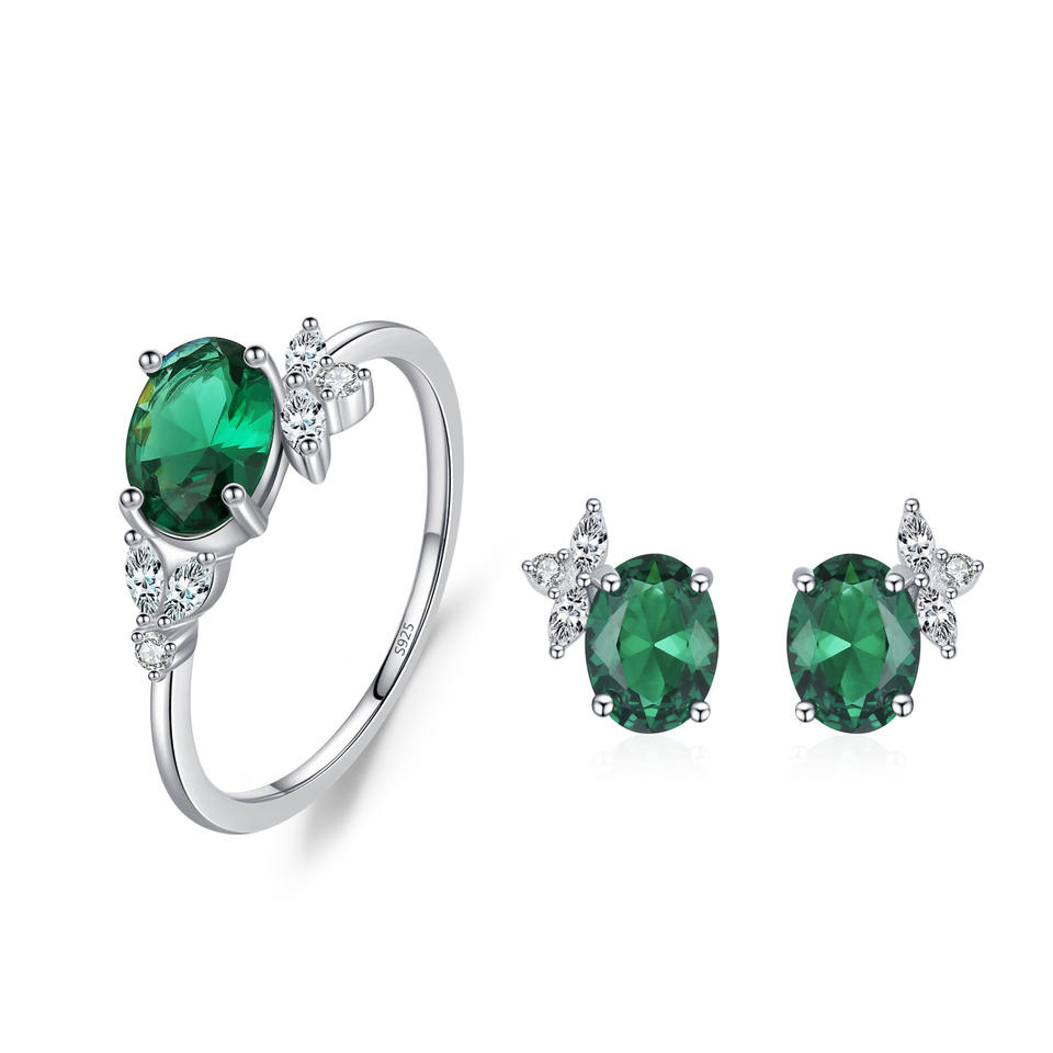 แหวนและต่างหูเงินแท้ S925 ประดับมรกตสไตล์วินเทจ ขายดี เหมาะสำหรับเป็นของขวัญวันวาเลนไทน์สำหรับผู้หญิง
