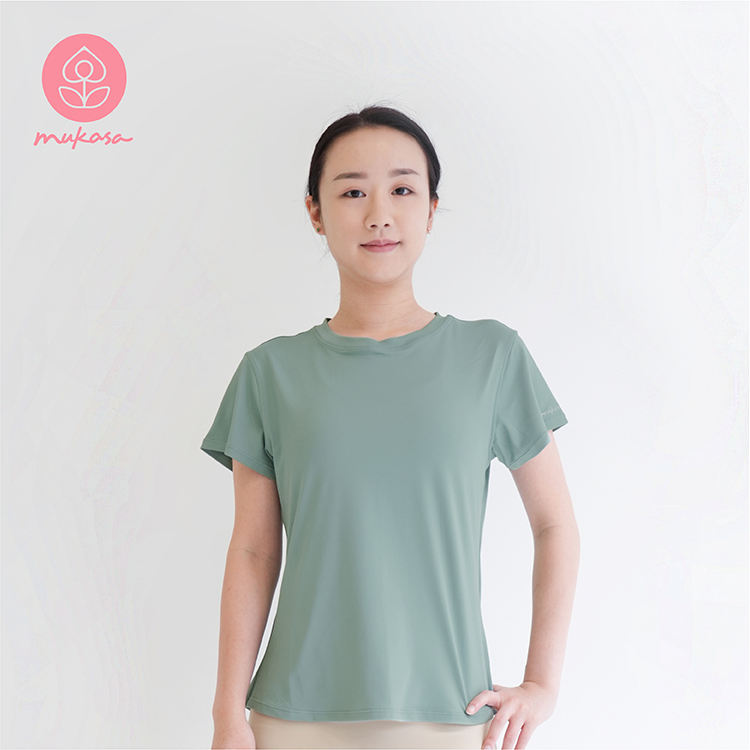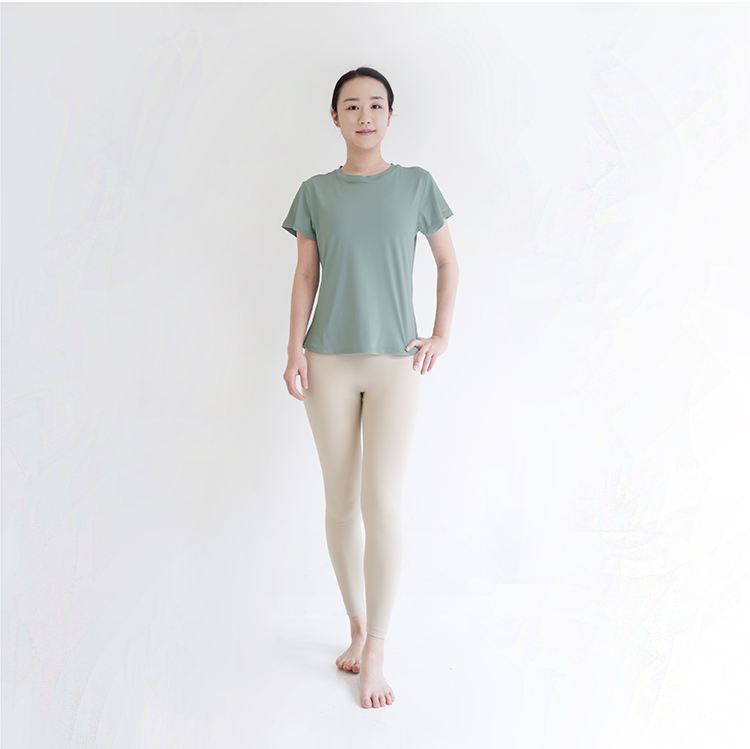 ขายร้อนเสื้อโยคะแขนสั้นเรียบง่ายสีเขียวโยคะสวมใส่เป็นมิตรกับสิ่งแวดล้อม