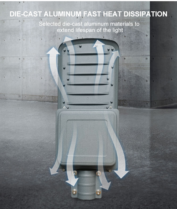 โคมไฟถนน LED พลังงานแสงอาทิตย์100W/200W/300W/400W 6000K อะลูมิเนียมหล่อ IP65แสงแดดกันน้ำสำหรับการก่อสร้าง