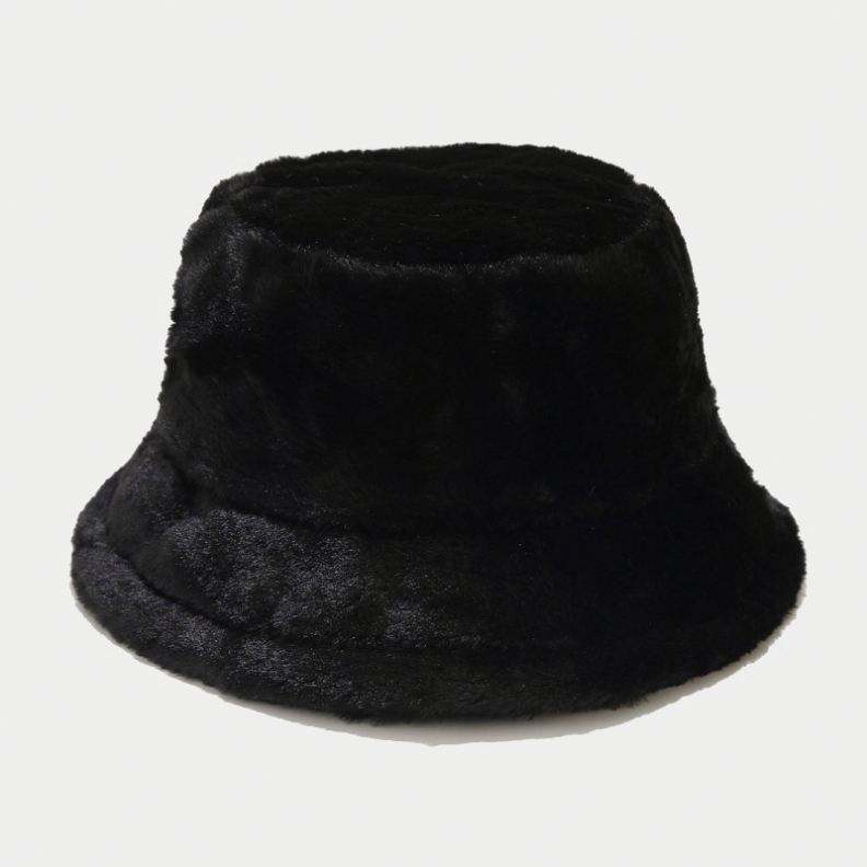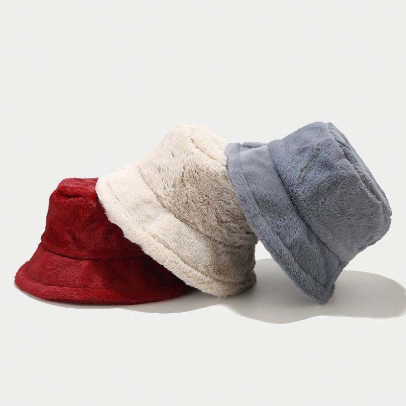หมวกตกปลาขนกระต่ายเทียมสีพื้นสำหรับผู้หญิงหมวกทรงถังให้ความอบอุ่นกลางแจ้งฤดูหนาว