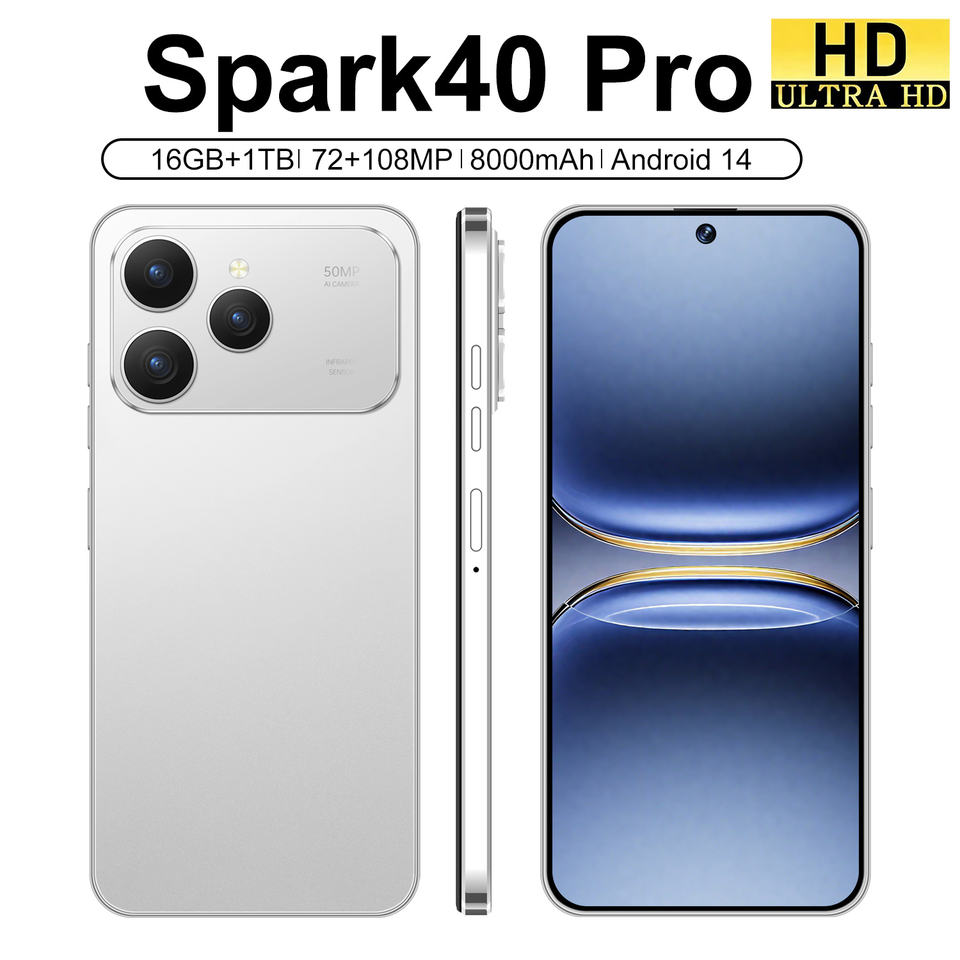 Spark40 Pro ขายดี โทรศัพท์หน้าจอใหญ่ 6.8 นิ้ว ช่องเสียบชาร์จแบบ Type-C รองรับสองซิมแบบ Dual Standby