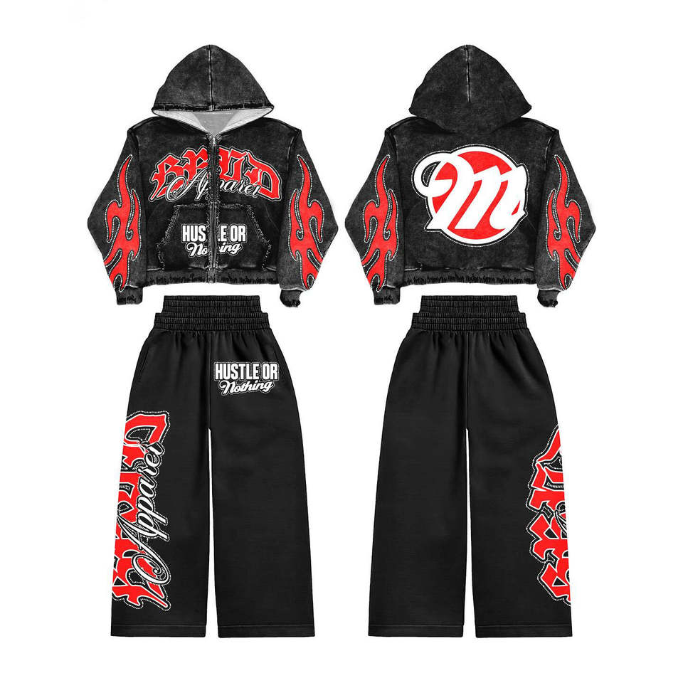 ชุดวอร์มขายดี ลายฟอกสี ชุดแทรคสูท ประดับเพชร ผ้าฝ้ายฟลีซ 100% ทรงโอเวอร์ไซส์ ผ้าคอตตอนหนานุ่ม สั่งทำพิเศษ แบบเรียบง่าย