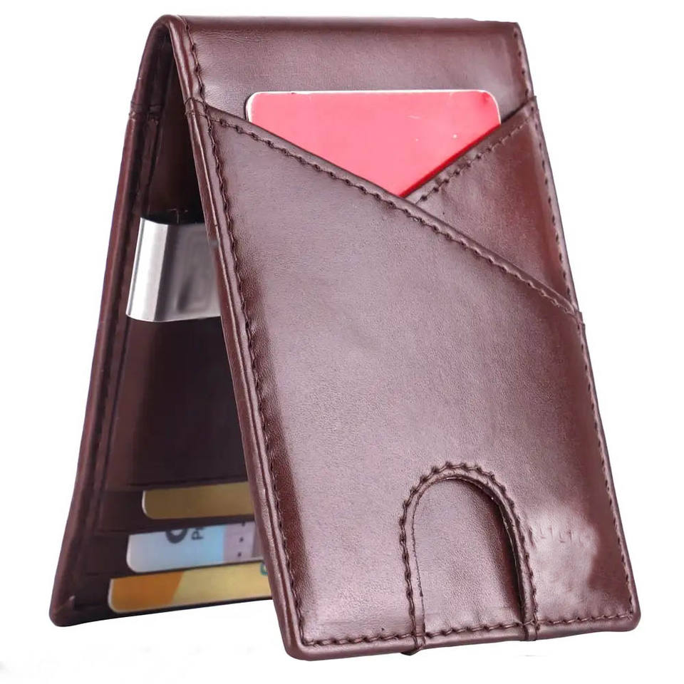กระเป๋าเงินแบบวินเทจหนังม้าสุดเพี้ยนแบบวินเทจที่ใส่บัตรบุหนังแท้แฟชั่น