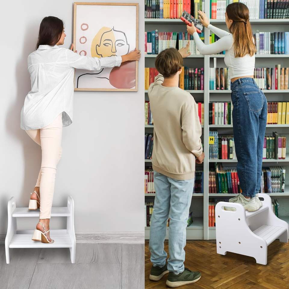 Hot Selling Wooden Step Stool for Kid Toddler with 2 Built-in Handle 300lbs Load Capacity Cacia Foot Stool