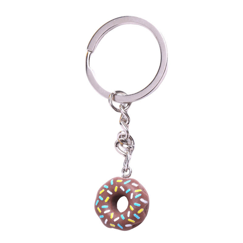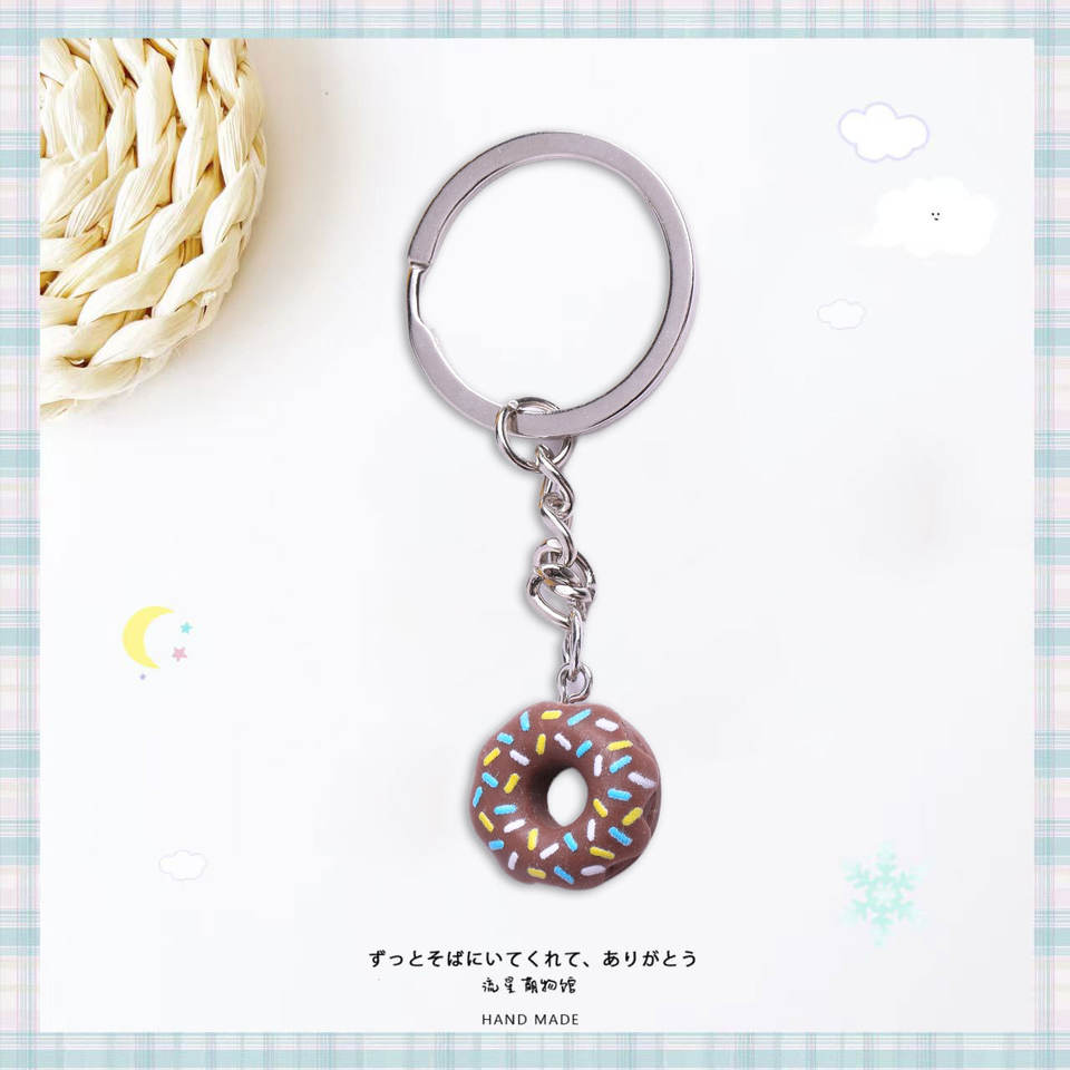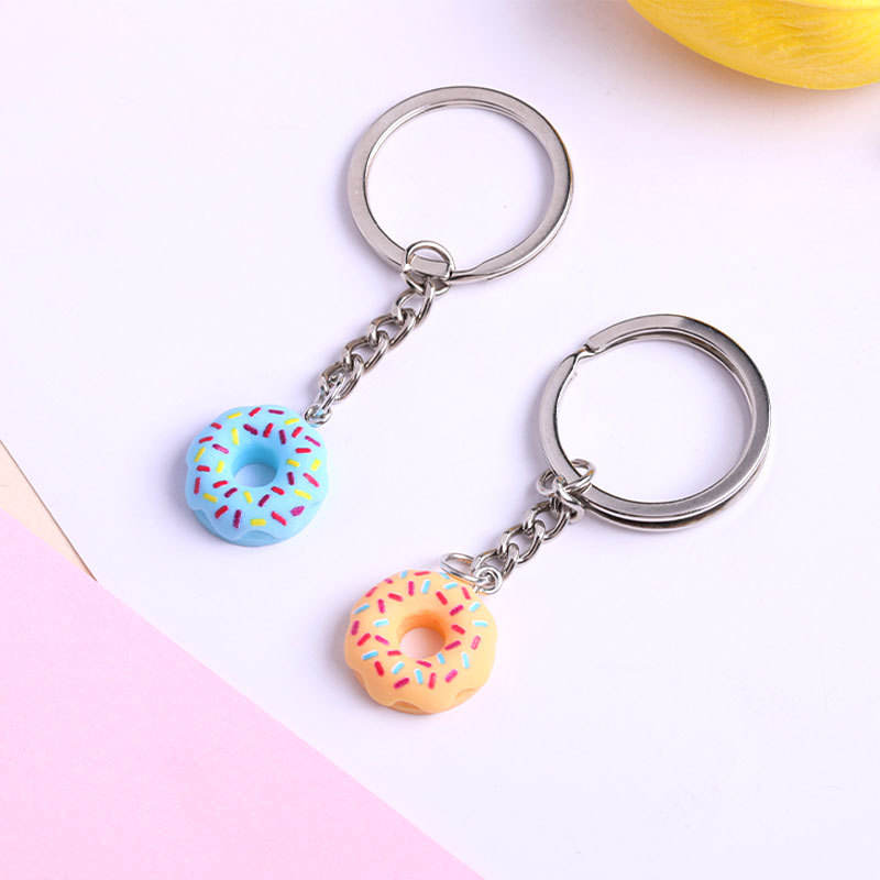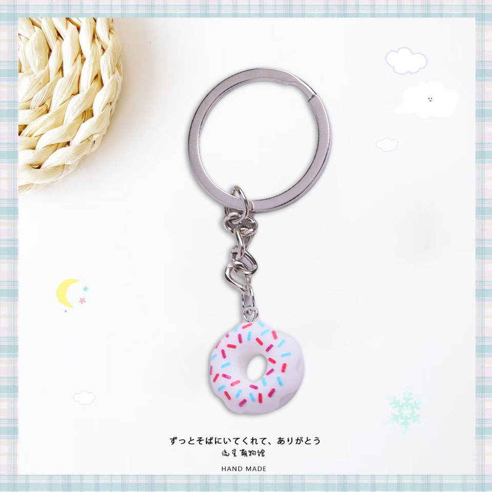 พวงกุญแจเครื่องประดับโดนัทสีชมพูสีขาวทำจากเรซินจำลองแบบกลวง