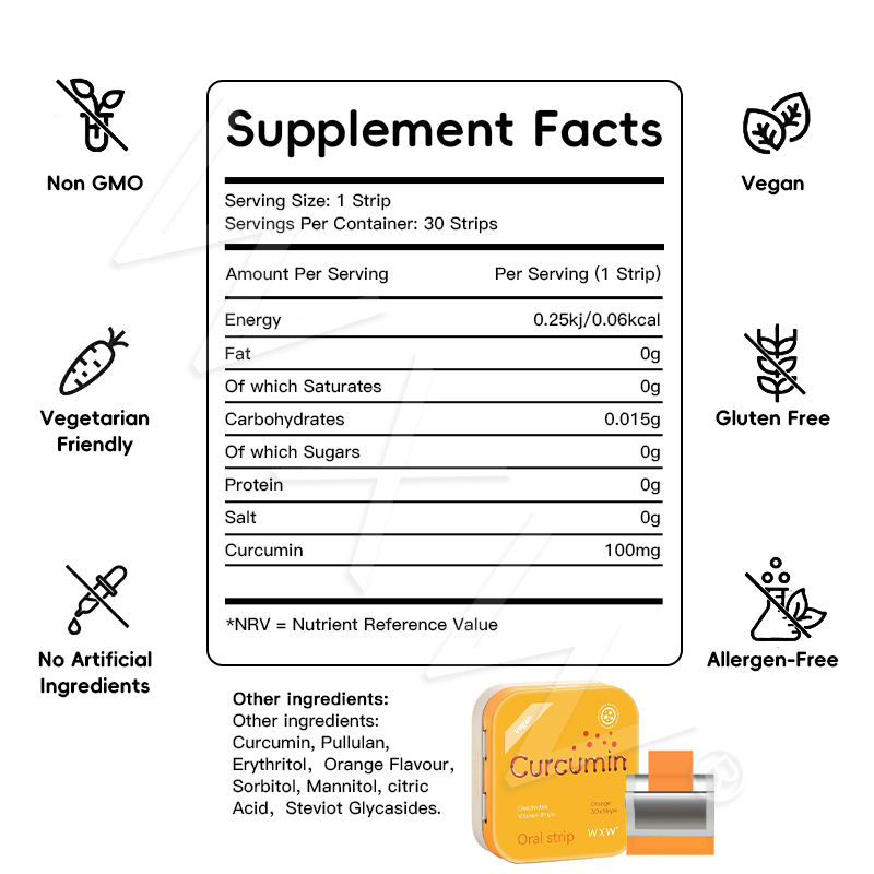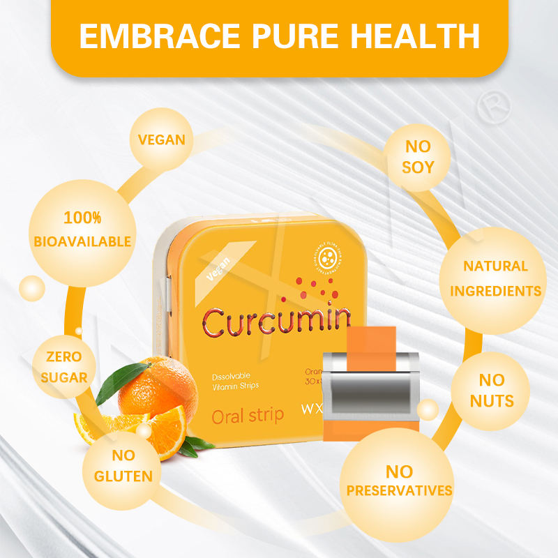 Hot selling food grade Curcumin oral strip Oral melt strips Supplements Orange flavour Melatonin oral strip