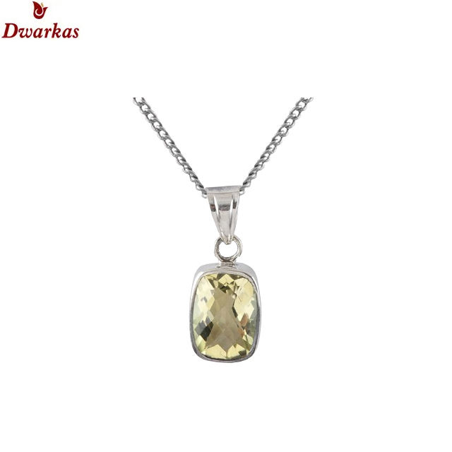 สร้อยคอจี้อัญมณีควอตซ์สีเงินมะนาว S925