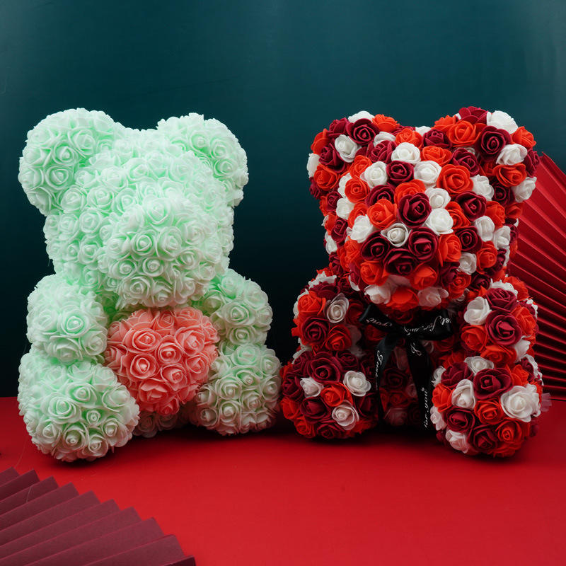 ตุ๊กตาหมีกอดกุหลาบหลากสีคุณภาพสูงขายดี ขนาด 40 ซม. ตุ๊กตาหมีกุหลาบ PE สีผสม