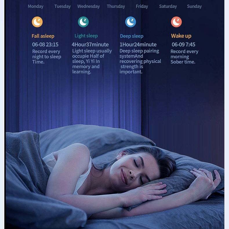 เครื่องติดตามการนอนหลับ, การตรวจจับออกซิเจนในเลือด, อัตราการเต้นหัวใจติดตาม, แสง, NFC