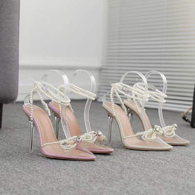 รองเท้าผู้หญิงขายดี สไตล์ใหม่ ประดับมุกและเพชร รูปทรงผีเสื้อ แฟชั่นหัวแหลม ส้นใส ส้นสูง