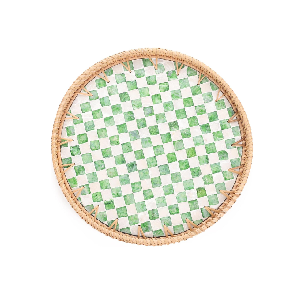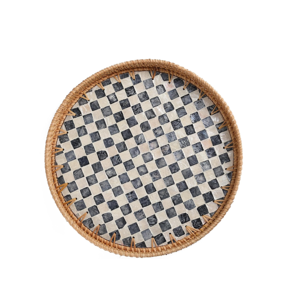 ถาดเสิร์ฟกาแฟหวายทรงกลมพร้อมกระดานลายตารางหมากรุกแม่มุกกำหนดขนาดเองได้จากเวียดนาม