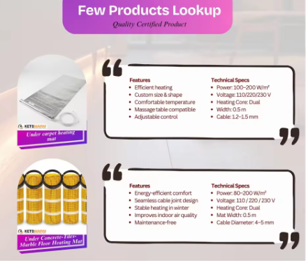 อพาร์ทเมนท์โรงแรม 230V 25A พื้นกระเบื้องคอนกรีตแบบไร้รอยต่อ แผ่นทำความร้อนทองแดง ฉนวนพีวีซี ดีไซน์อุตสาหกรรม รับประกัน 1 ปี