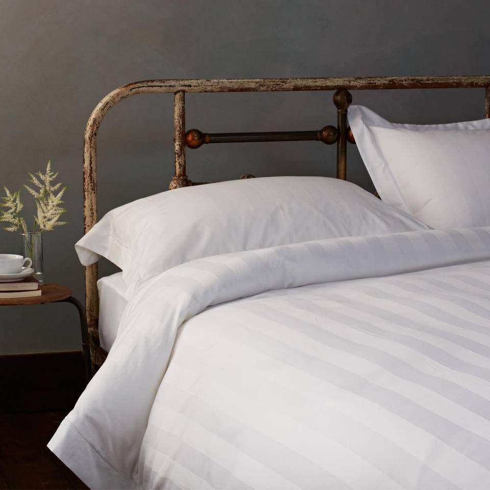 ชื่อผลิตภัณฑ์:ผ้าปูที่นอนโรงแรมผ้าลินินผ้าฝ้ายสีขาวขนาดควีนไซส์มีลายทาง