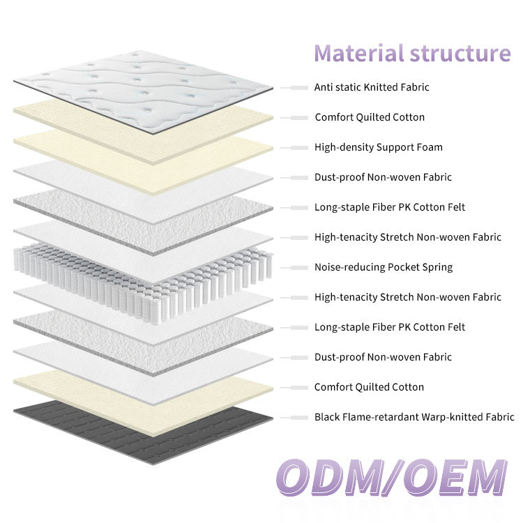 Hotel Bedroom Memory Mattress Pocket Spring Compressed Bed Foam Mattresses in a Box