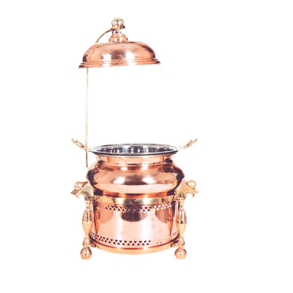 จานชุบทองทำจากโลหะทองแดงตกแต่งโรงแรมสำหรับเสิร์ฟอาหารบุฟเฟ่ต์และจัดเลี้ยงอาหารแนวคิดส่งเสริมการขายจานร้อน