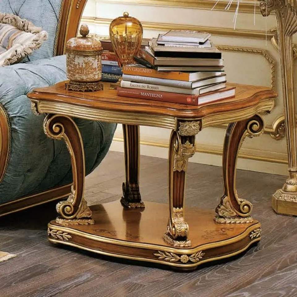 ชุดโซฟาสำหรับห้องนั่งเล่นสไตล์ยุโรปทำจากไม้มะฮอกกานีแกะสลักสีน้ำตาลทองหรูหราสำหรับโรงแรม