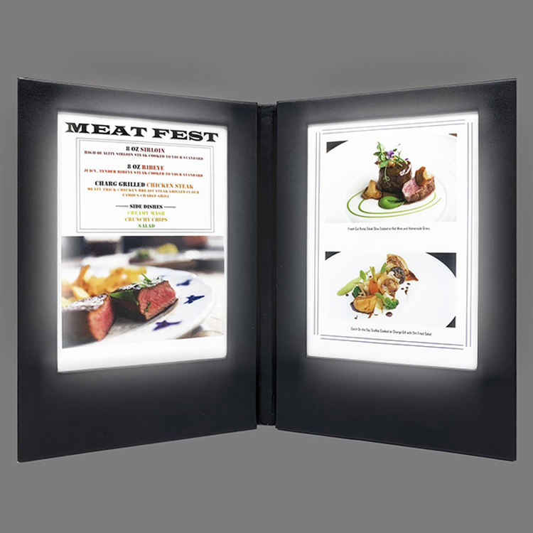 โรงแรมร้านอาหารฟาสฟู้ดอัลตร้าบาง4หน้า4มุมมอง LED เมนูเครื่องดื่มบาร์เมนูปก