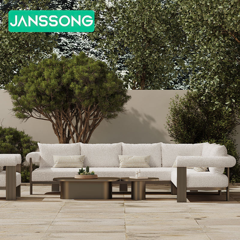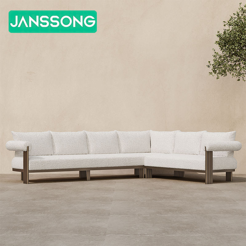ชุดโซฟาอลูมิเนียมรูปตัวแอลสำหรับสวนโรงแรมริมสระน้ำ ชุดเฟอร์นิเจอร์สวนโรงแรมทันสมัย ชุดโซฟากลางแจ้งสำหรับวิลล่าและรีสอร์ท