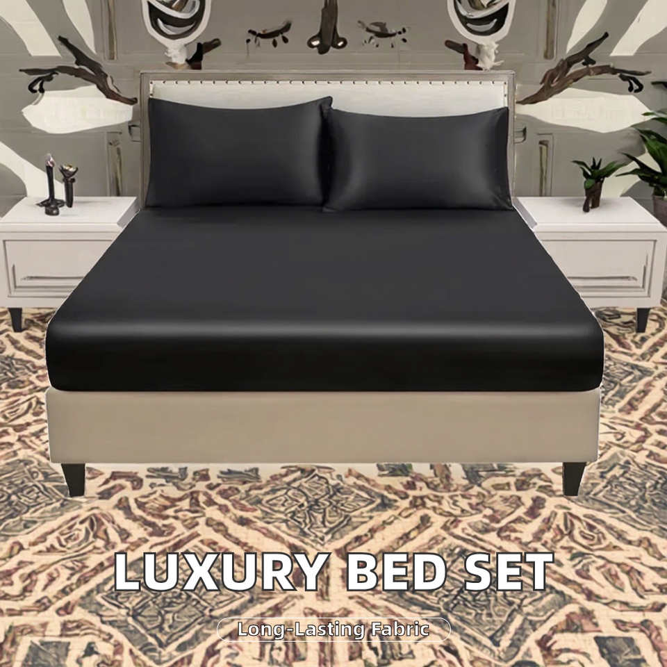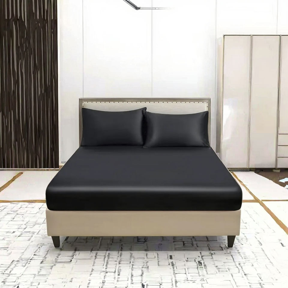 Hotel-Grade Satin 400TC Grade Bed Sheet Duvet Cover Set Solid Colors Polyester Double Size All-Season Woven European American