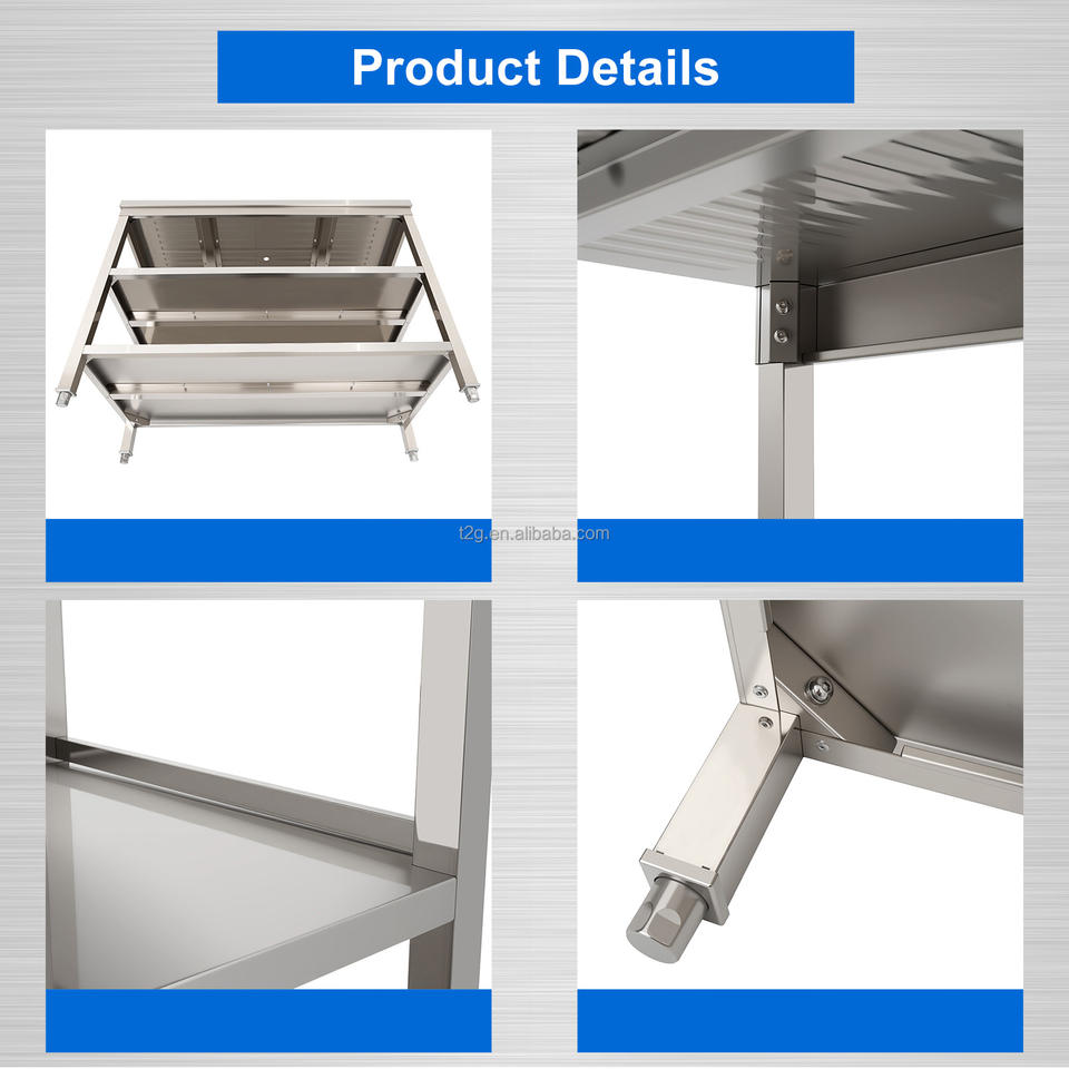 อุปกรณ์ครัวโรงแรม โต๊ะทำงานสแตนเลส 304 3 ชั้น สำหรับร้านอาหาร