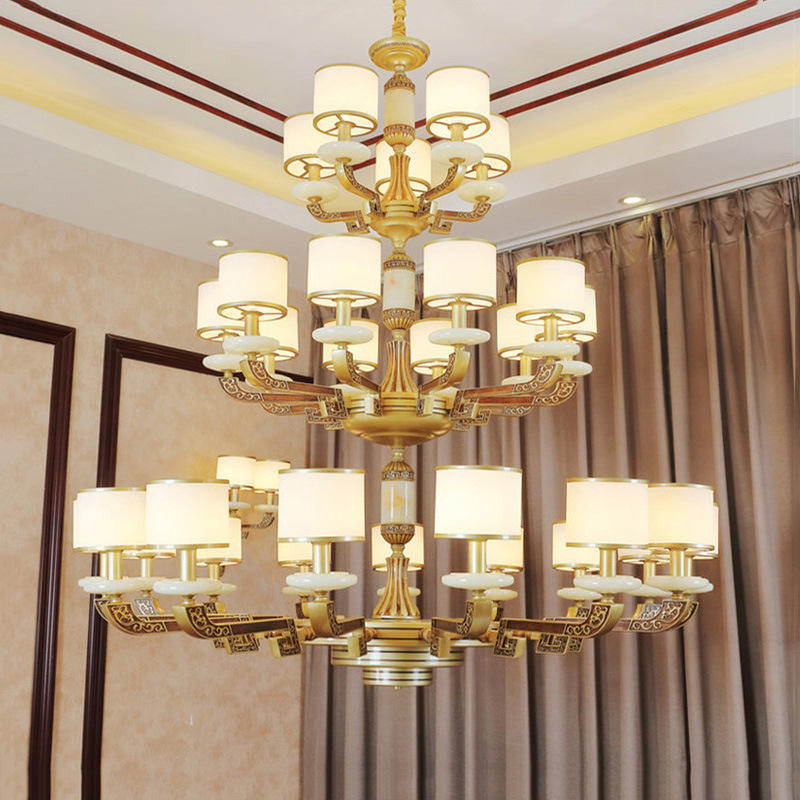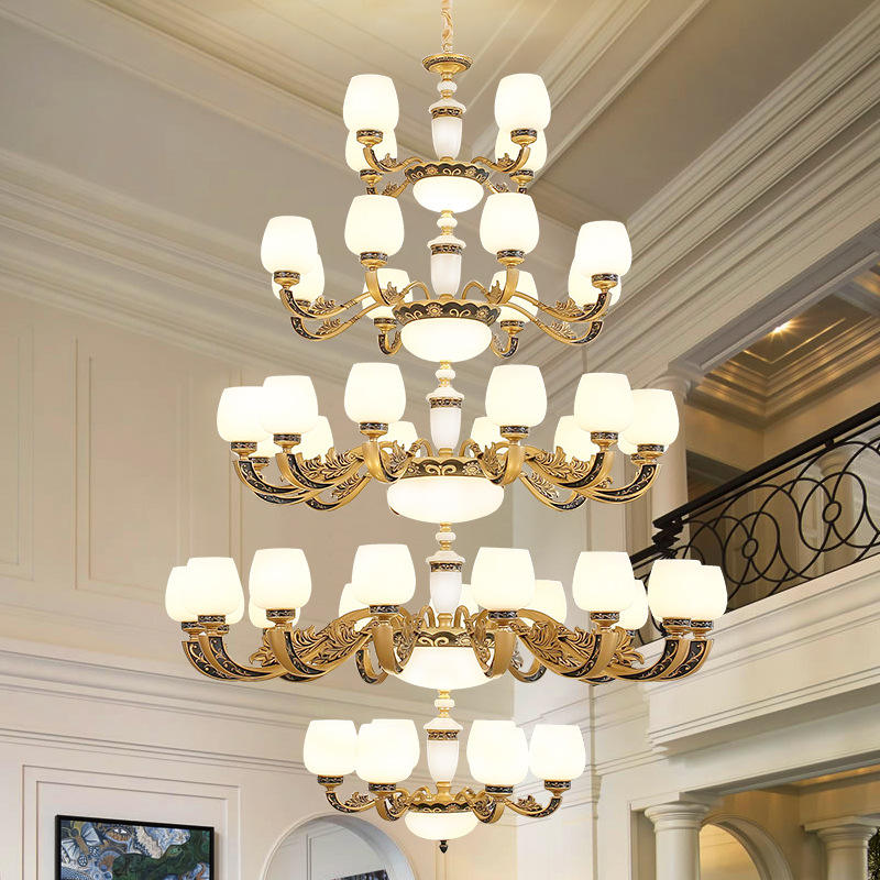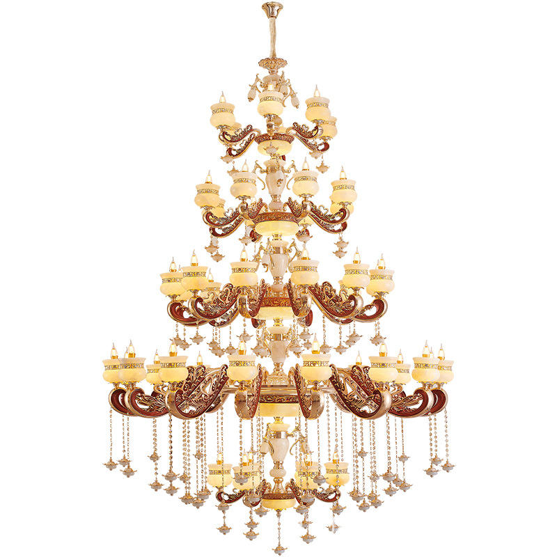 โคมไฟระย้าคริสตัลแบบจักรวรรดิสำหรับล็อบบี้โรงแรม โคมไฟห้อยเพดานสำหรับบราซิล โคมไฟห้อยเพดานหยกสไตล์ยุโรปเหนือแบบเรียบง่าย
