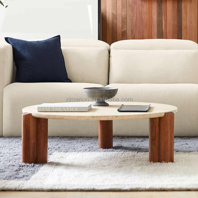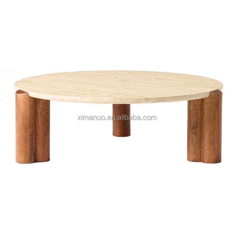 โต๊ะกลางโรงแรมหรูหรา ฐานไม้โอ๊ค โต๊ะน้ำชาโมเดิร์น ท็อปหินอ่อน รูปทรงไม่สมมาตร โต๊ะกาแฟขนาดเล็กสำหรับอพาร์ทเมนต์สมัยใหม่