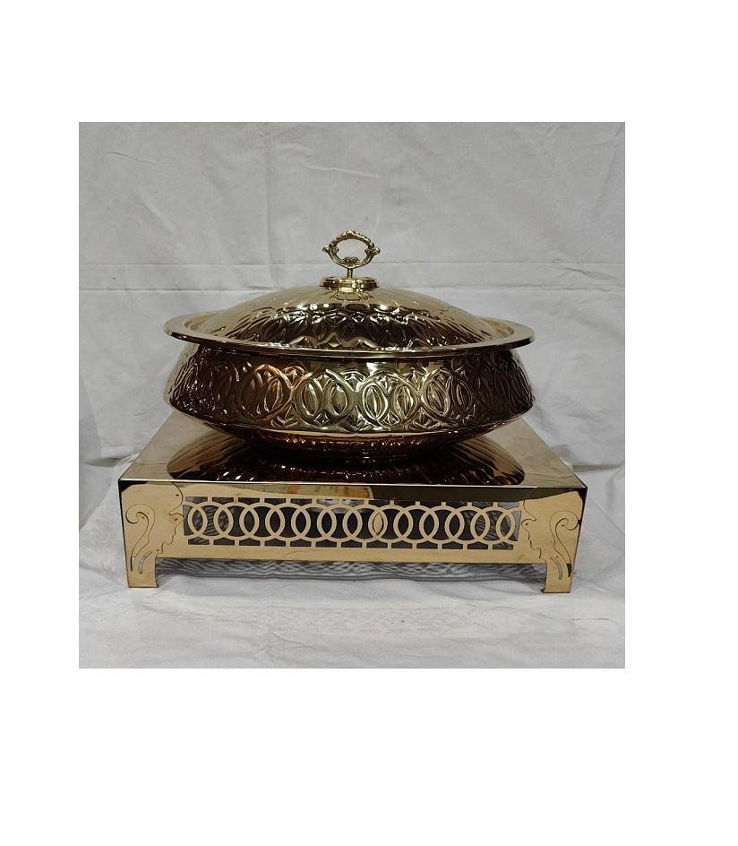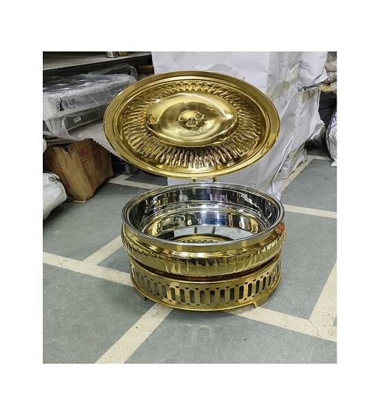 จานอุ่นอาหารสแตนเลสสุดหรูของโรงแรมดีไซน์อาร์ตเดคโคทนทานหม้อไฟบุฟเฟ่ต์สำหรับร้านอาหารการจัดเลี้ยง