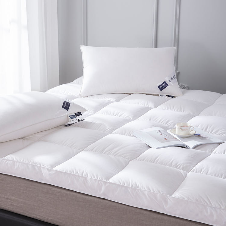 โรงแรมที่นอนแผ่นขนเป็ดห่านสีขาวหนาบรรจุ 10 ซม.ที่นอน Topper