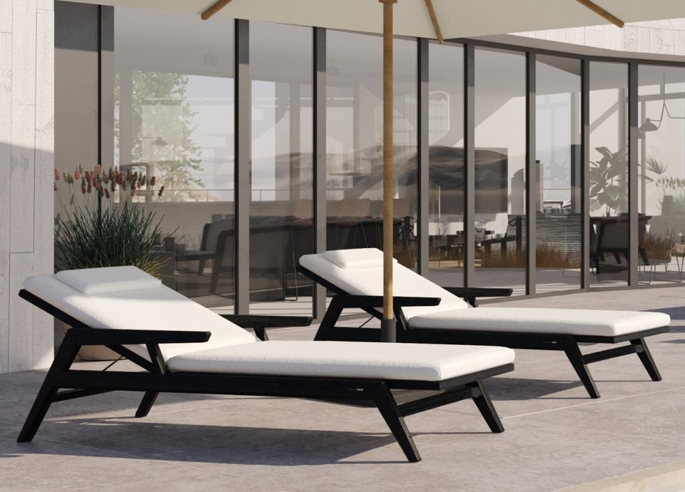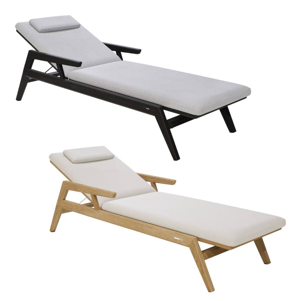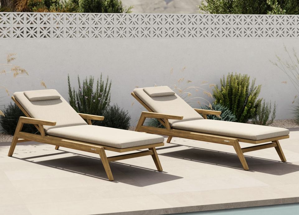 Hotel Outdoor Beach Sunbed Luxury Garden Furniture Solid Teak Wood in Brushed Teak Finish Sunset Sun Loungers Arm Swimming Pool