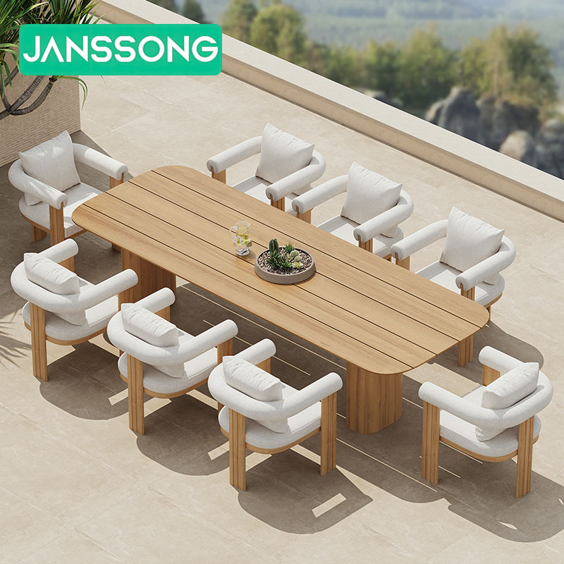 ชุดโต๊ะรับประทานอาหารกลางแจ้งสำหรับโรงแรม เฟอร์นิเจอร์สวน โต๊ะและเก้าอี้สนาม โต๊ะรับประทานอาหารกลางแจ้ง ชุดโต๊ะไม้สัก ชุดโต๊ะรับประทานอาหารสำหรับลานบ้าน