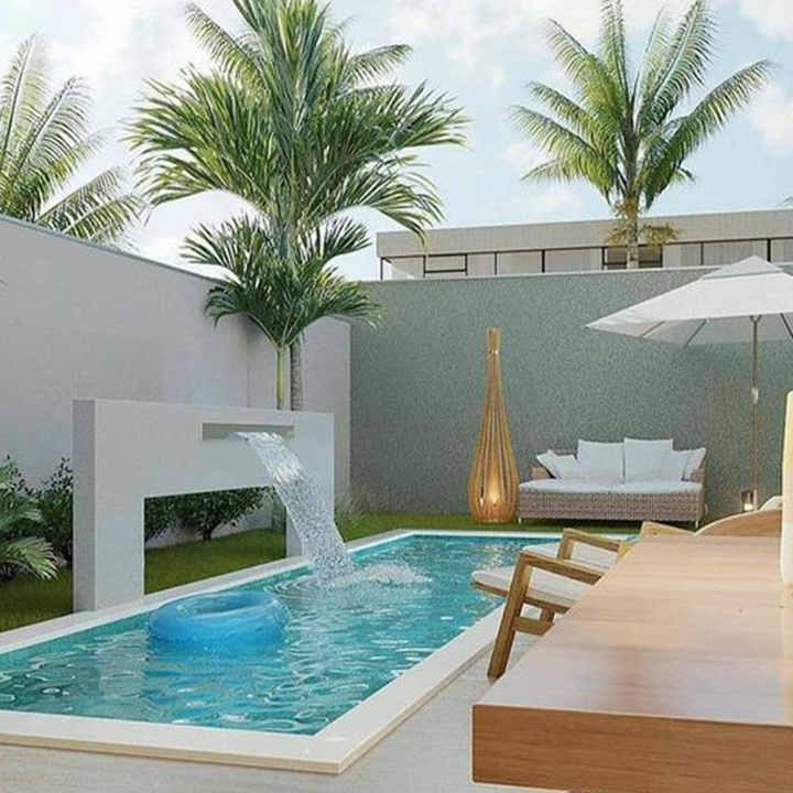 ชุดสระว่ายน้ำสำเร็จรูปพร้อมน้ำตก สำหรับโรงแรม รีสอร์ท ครอบครัว วัสดุไฟเบอร์กลาส กระเบื้องโมเสค สีสั่งทำได้