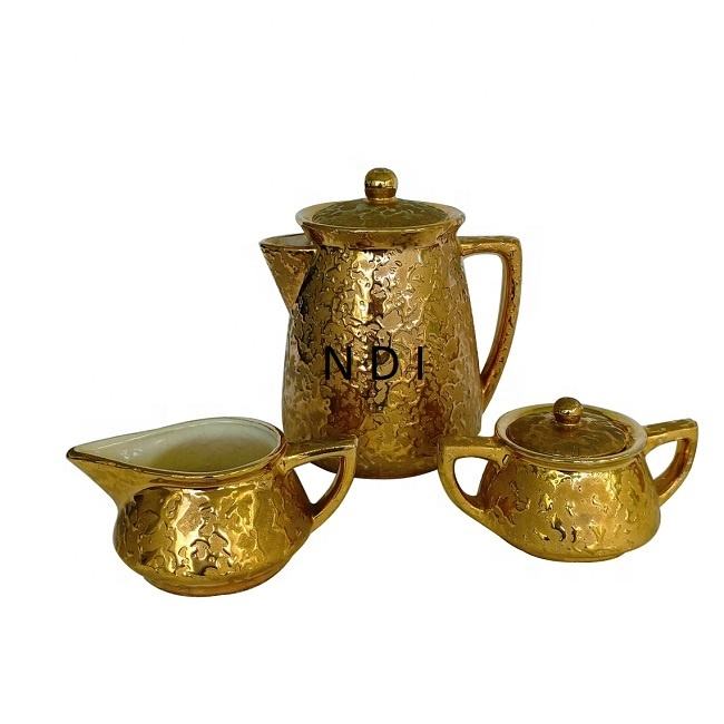 ชุดกาน้ำชาทองเหลืองแบบนูนชุดกาน้ำชาสุดหรูสำหรับโรงแรมร้านอาหารชุดชาโลหะสำหรับใช้ในการจัดเลี้ยง