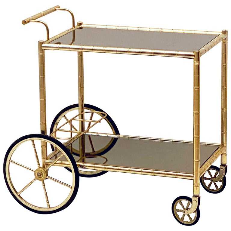 เฟอร์นิเจอร์ร้านอาหารโรงแรม รถเข็นบาร์เสิร์ฟชาและกาแฟ โต๊ะอาหารหน้าบานกระจกเงา โครงโลหะสีทองหรูหรา