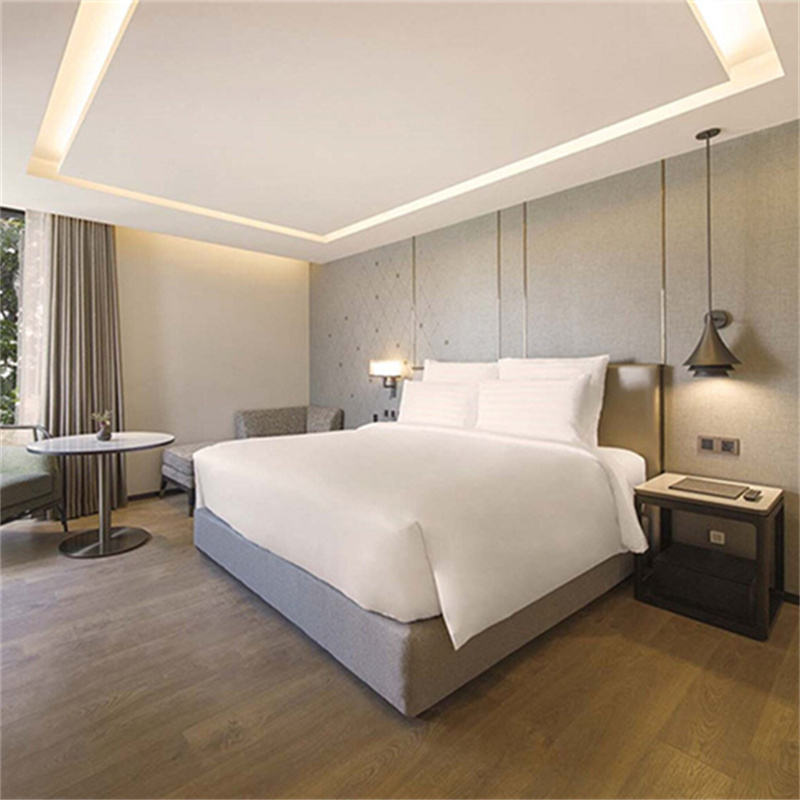 เตียงไม้มาตรฐานโรงแรมที่ทนทานชุดเฟอร์นิเจอร์ห้องนอนมืออาชีพสำหรับโรงแรมอพาร์ทเมนท์และห้องชุด
