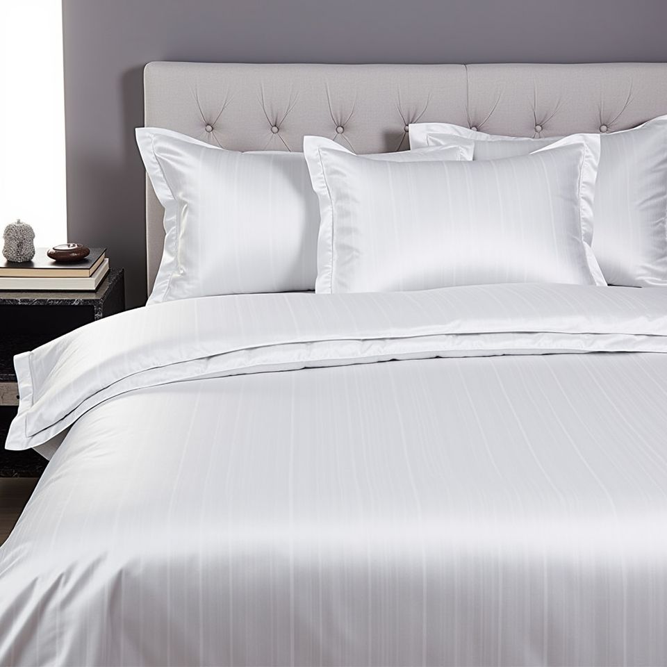 ปลอกผ้านวมแบบโรงแรม ขนาด 210x230 ซม. ผลิตจากผ้าโพลีคอตตอนทอ 4040s 250T ลายทางซาติน ขอบเย็บแบบฝรั่งเศส ลายเรียบหรู ดูสะอาดตา
