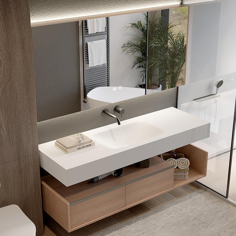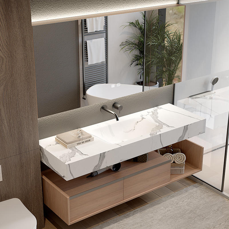 ชุดอ่างล้างหน้าแบบสองชั้นสไตล์ญี่ปุ่นสำหรับโรงแรม พร้อมอ่างหินเผาไร้รอยต่อแบบโค้งร้อน