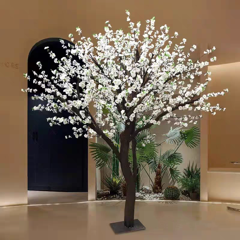 ต้นซากุระประดิษฐ์สีขาวขนาดใหญ่สำหรับตกแต่งโต๊ะงานแต่งงานในโรงแรม